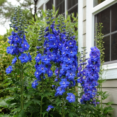 General Information: Abundant, long-blooming flowers, ideal for bouquets. Attractive at garden’s edge and especially nice with coreopsis or pink roses. More tolerant of heat and dry soil than other delphiniums. Remove faded flower stalks for rebloom. Attracts hummingbirds.