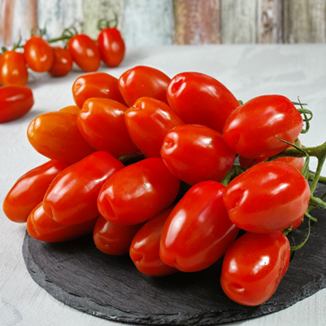 General Information: smooth, globe-shaped red fruit, low-acid, sweet flavor, making it excellent for fresh eating, salads, and canning, disease-resistant, and crack-resistant