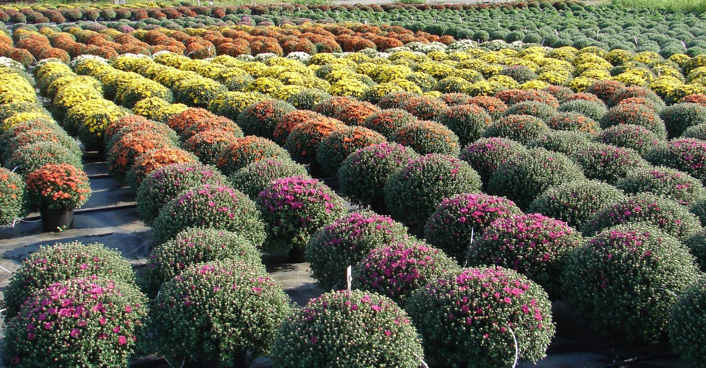 We provide plant material to stores, garden centers and landscapers by contract growing or selling wholesale plants from our availability list. Situated on 30 acres our growing facilities include 75,000 sq. ft. of covered greenhouse growing areas and outdoor irrigated “mum” field. Only legitimate businesses may buy wholesale and must provide proper documentation such as FEIN #, S.U.T. #, with legal business name and address, purchase in full tray increments, and have minimum orders.